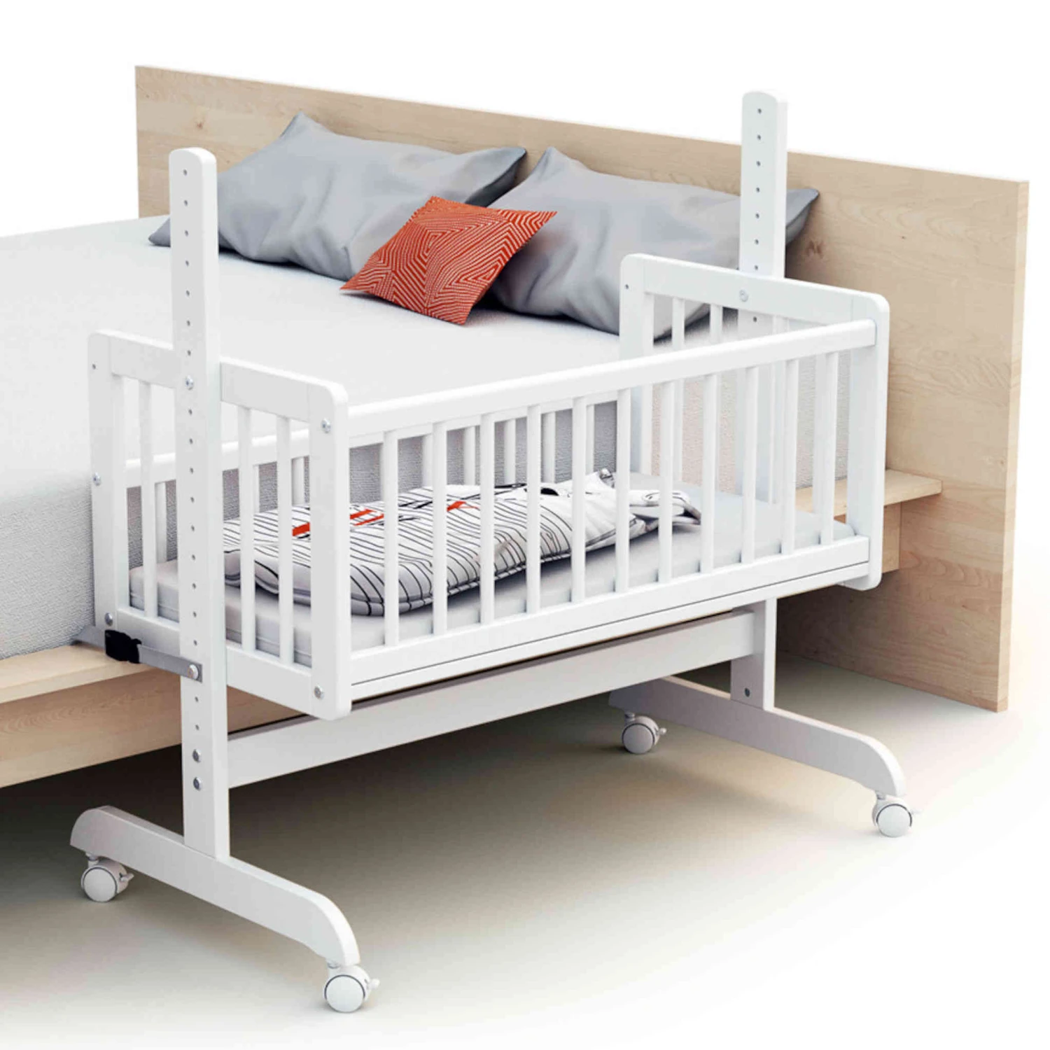 Ce berceau cododo existe en coloris blanc, gris et hêtre verni.