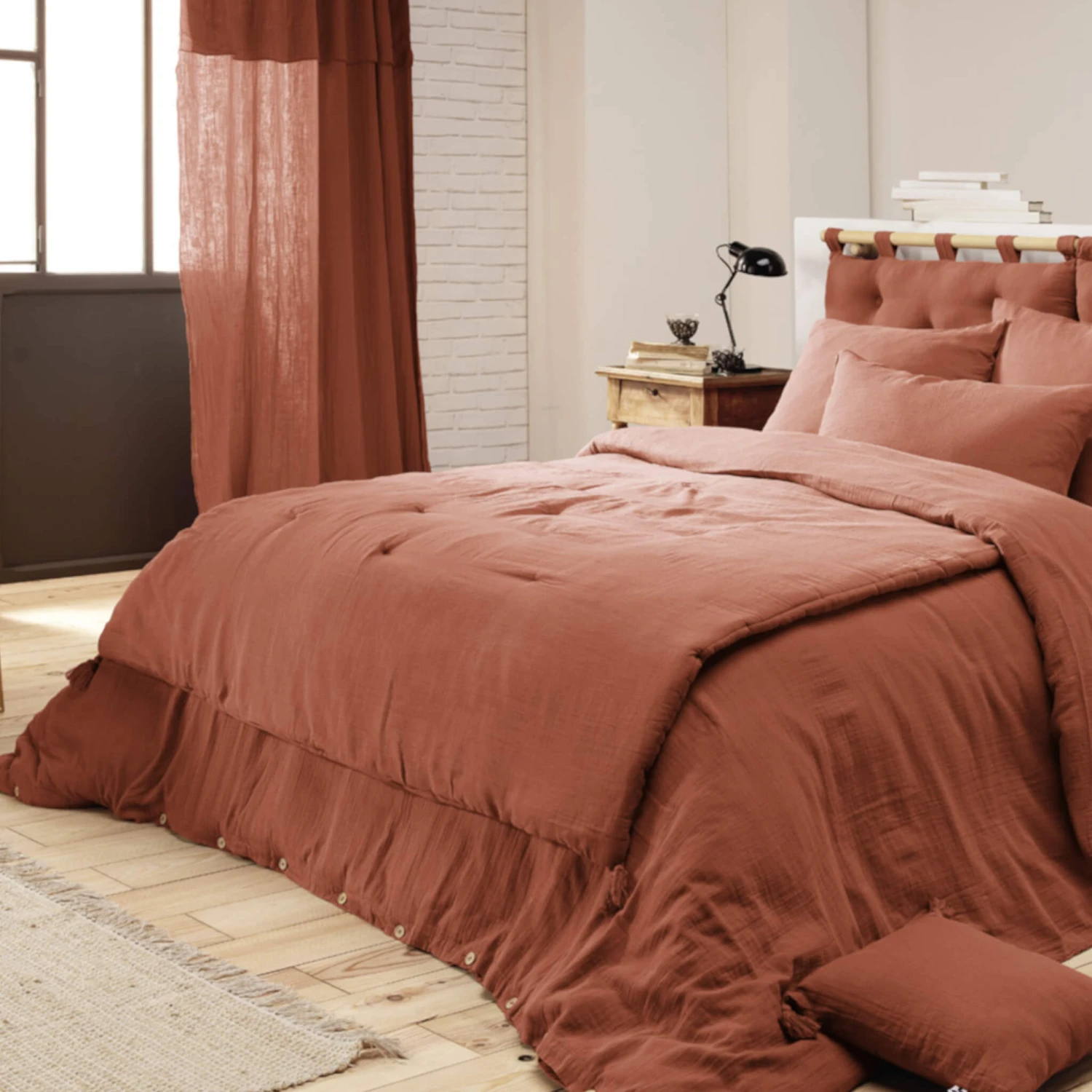 Le couvre-lit est en double de gaze de coton