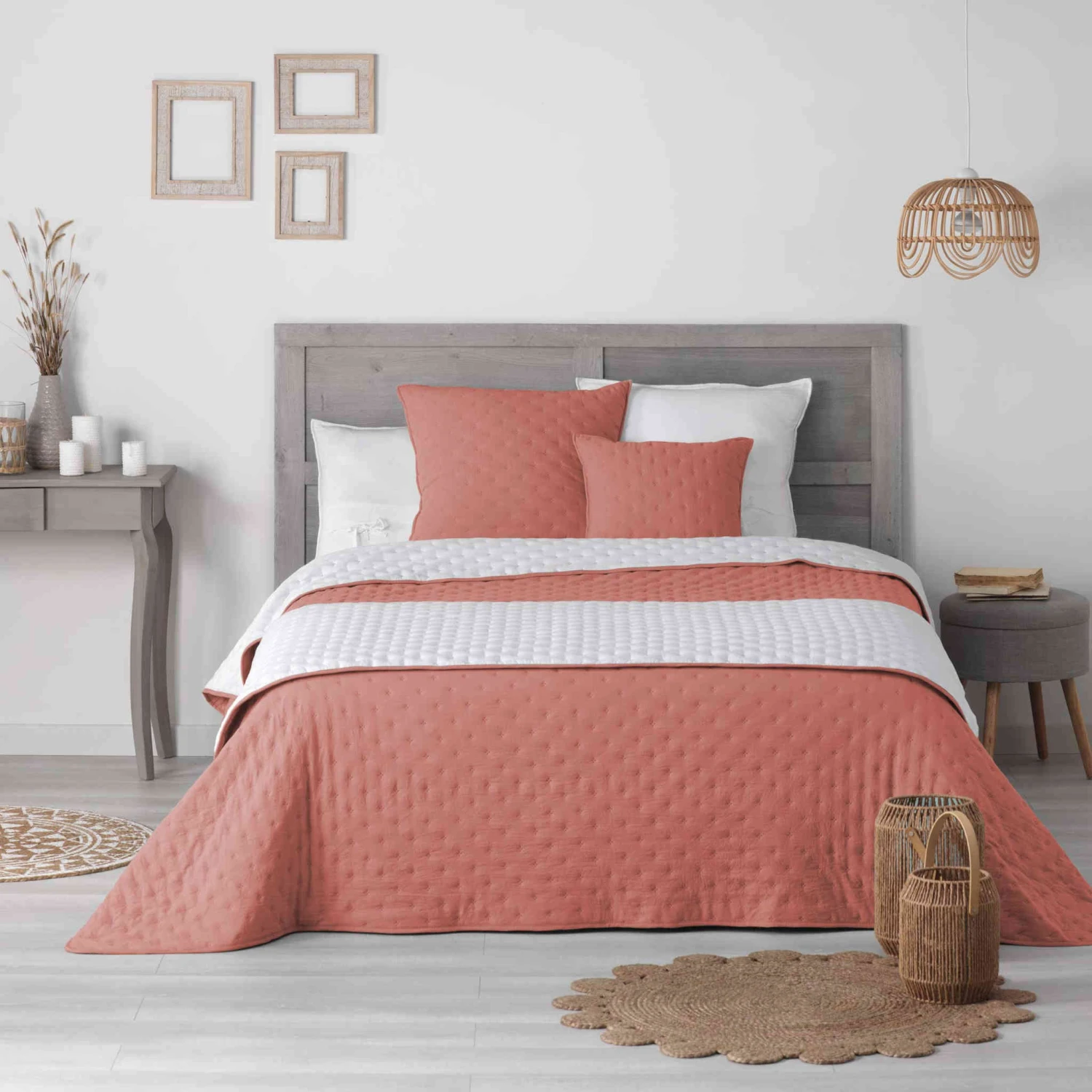 Couvre-lit microfibre matelassé Mellow chic terracotta et blanc
