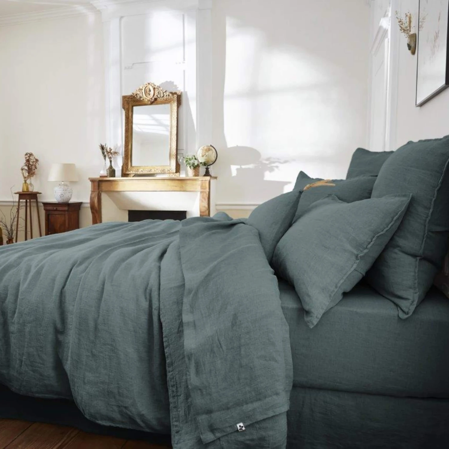 Drap plat lin lavé – Terre de Nuit