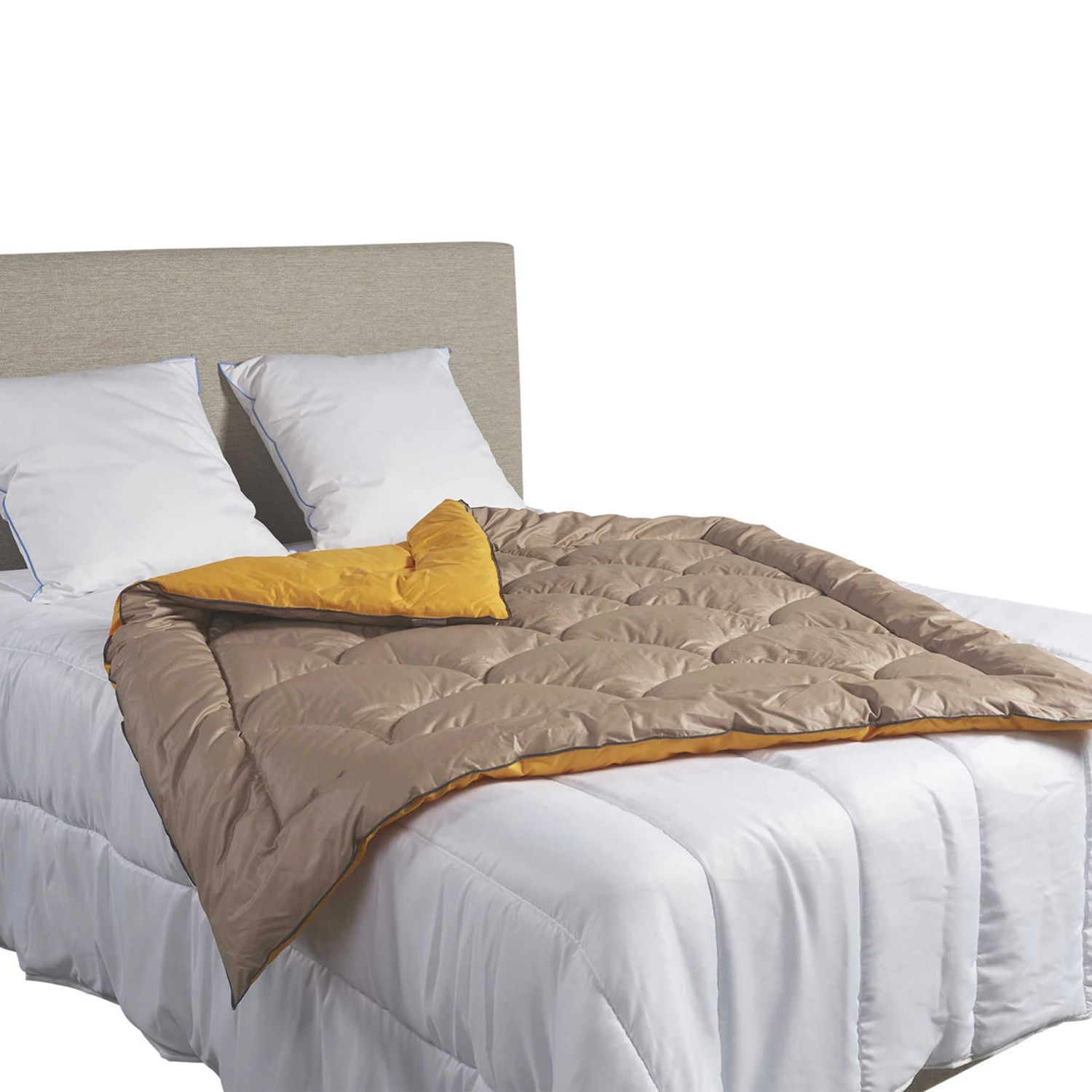 L’enveloppe de l’édredon bicolore est composée à 70%