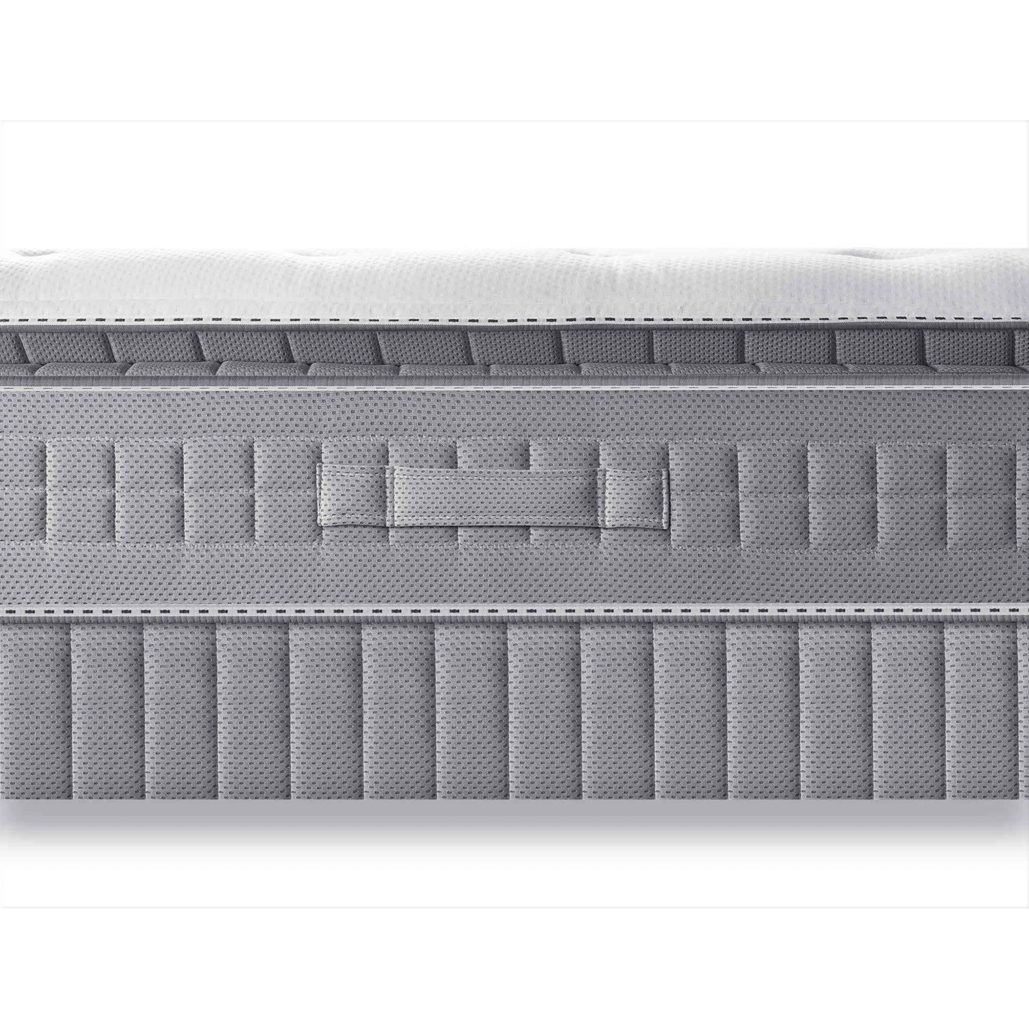 – Matelas Simmons haut de gamme à ressorts ensachés SW5 au soutien ferme et à l’accueil très moelleux.