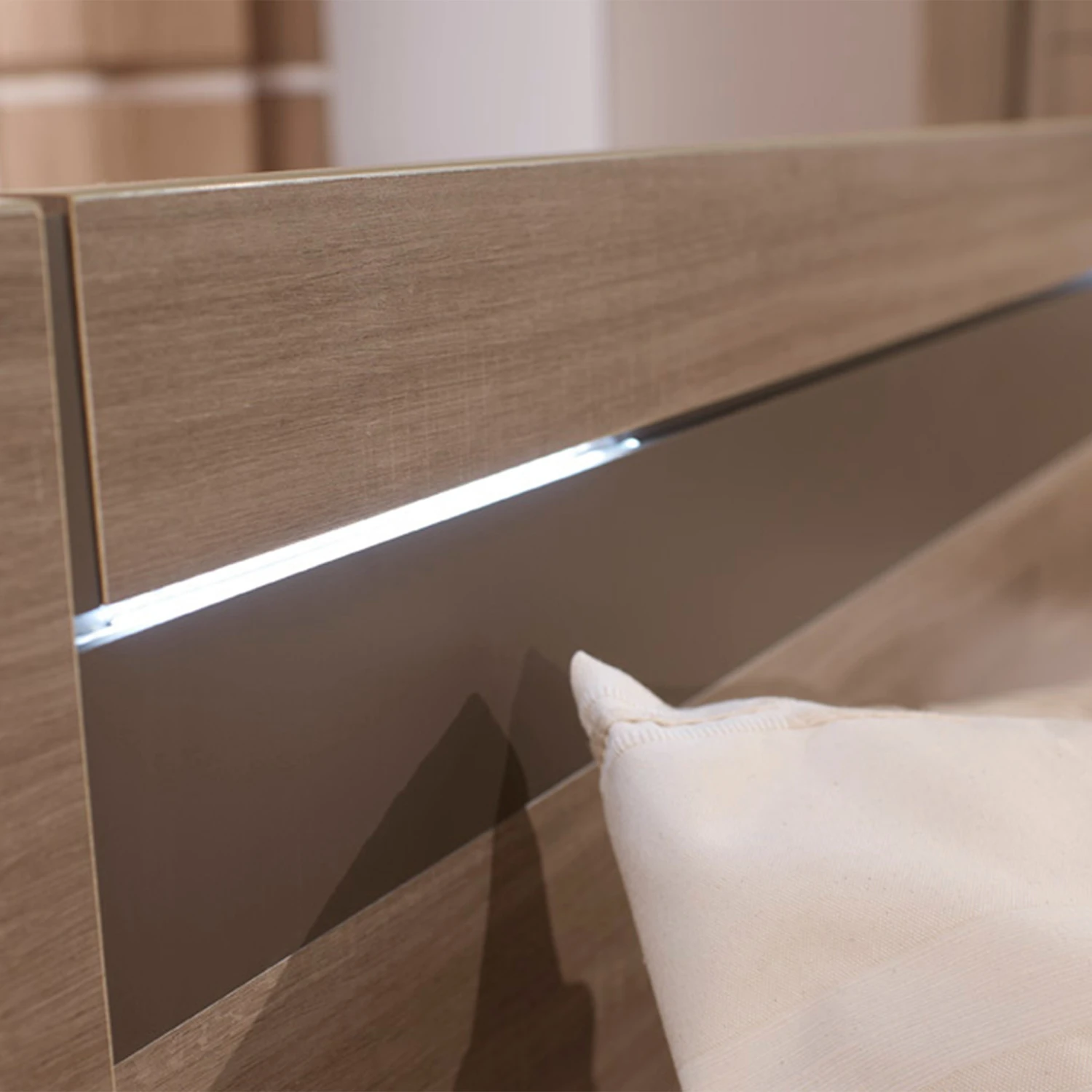 - Tête de lit incluse avec panneau mélaminé chocolat + leds