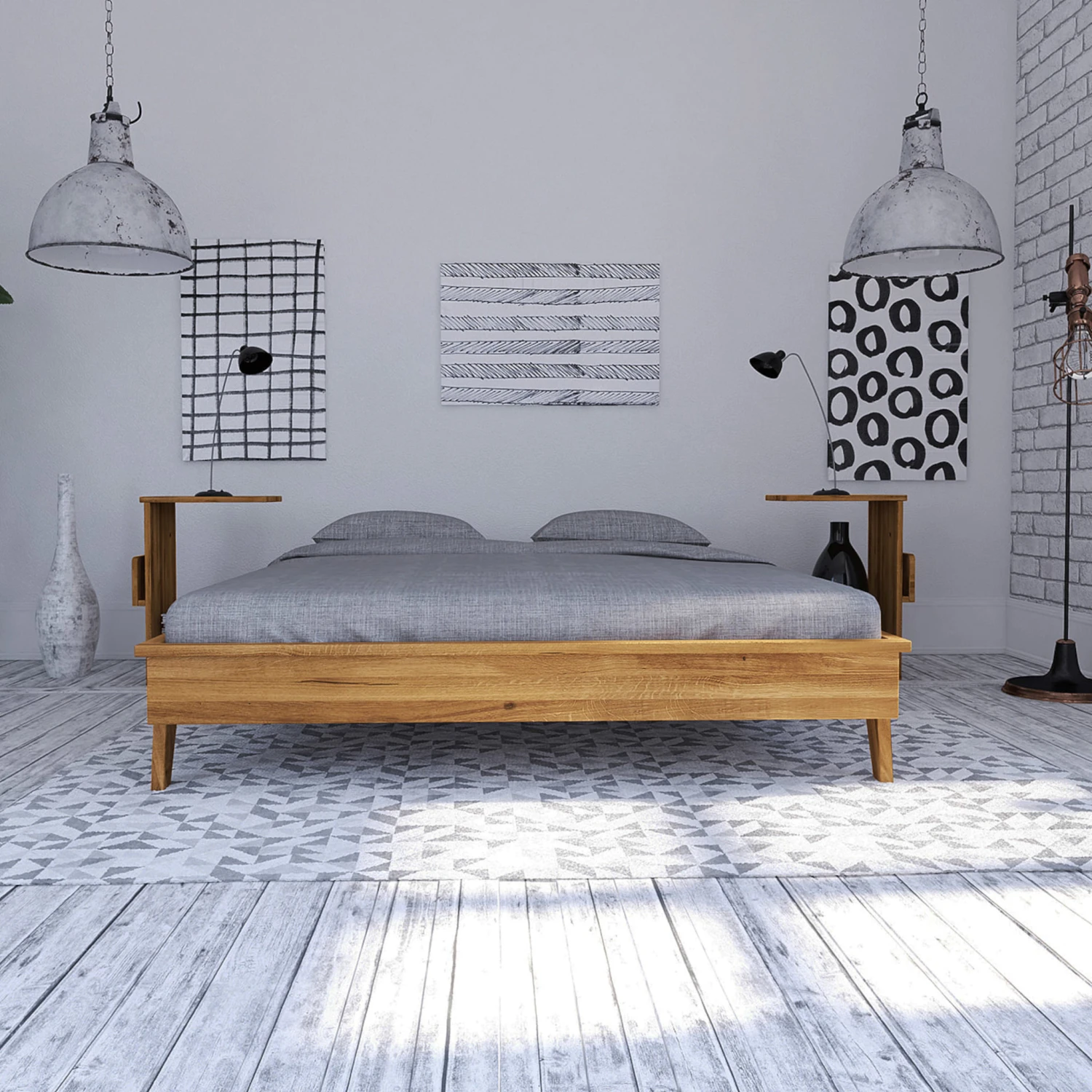 Lit avec pieds inclinés en chêne massif clair – LT36003.
