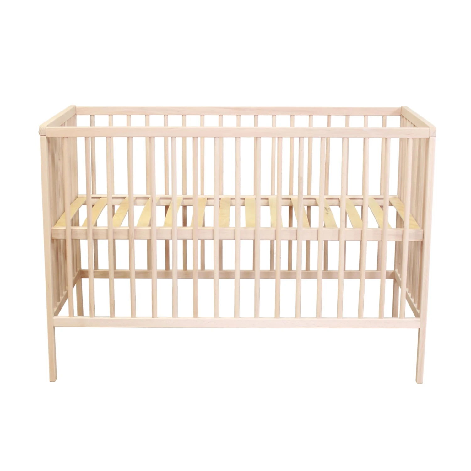 Lit bébé à barreaux en bois massif avec sommier réglable en hauteur 60×120. Ce lit bébé au style sobre et intemporel est l’idéal pour aménager la première chambre de votre bébé. Son sommier à lattes apparentes est réglable en hauteur sur 3 niveaux (haut : 31 cm, milieu 46 cm, bas : 61 cm), afin de faciliter le couchage de bébé et garantir sa sécurité. Son bois massif de hêtre vous assurera une solidité et une longévité idéales pour accompagner l’évolution de votre famille pendant plusieurs années!
