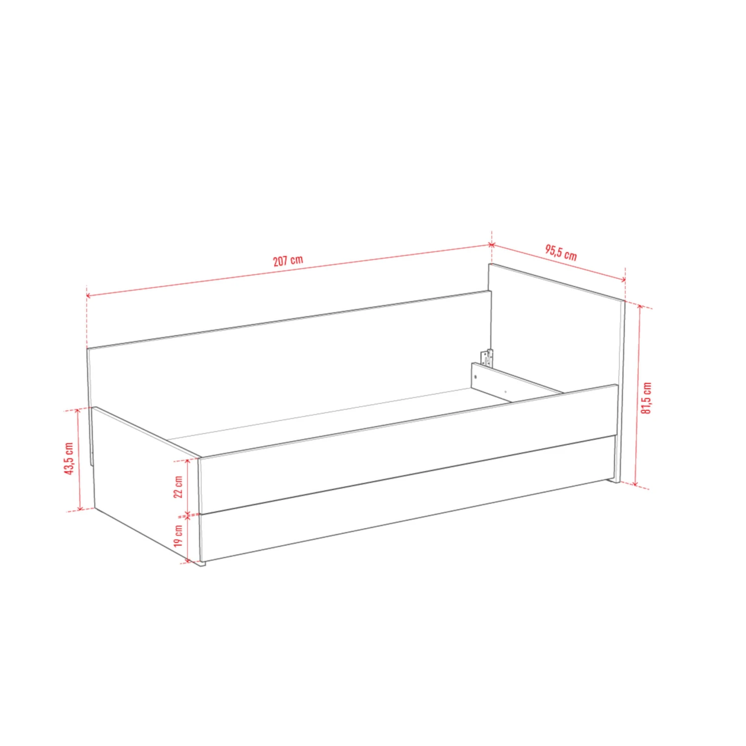cm , Longueur 207 cm, Hauteur 82 cm - Poids : 72,2 kg
