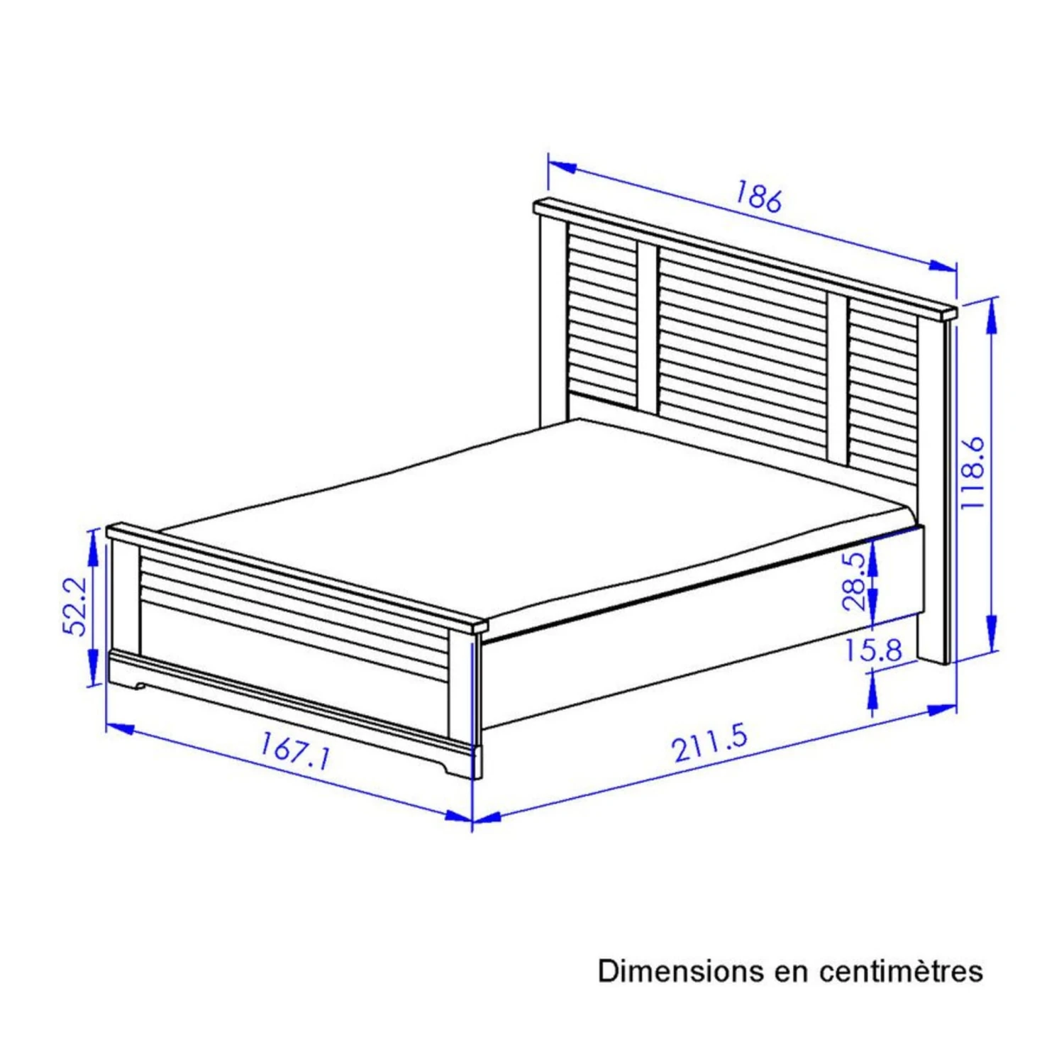 Ce lit en bois est un atout idéal pour sublimer et aménager votre chambre. Il possède une jolie tête de lit qui apporte style et confort. Sa structure en panneaux de particules revêtues de papier imitation persienne garantit une structure solide, de plus il est de fabrication française garantissant des finitions de qualité. Le tout avec une imitation châtaignier cérusé ce qui lui apporte ce style tendance pouvant rappeler le bord de mer.
