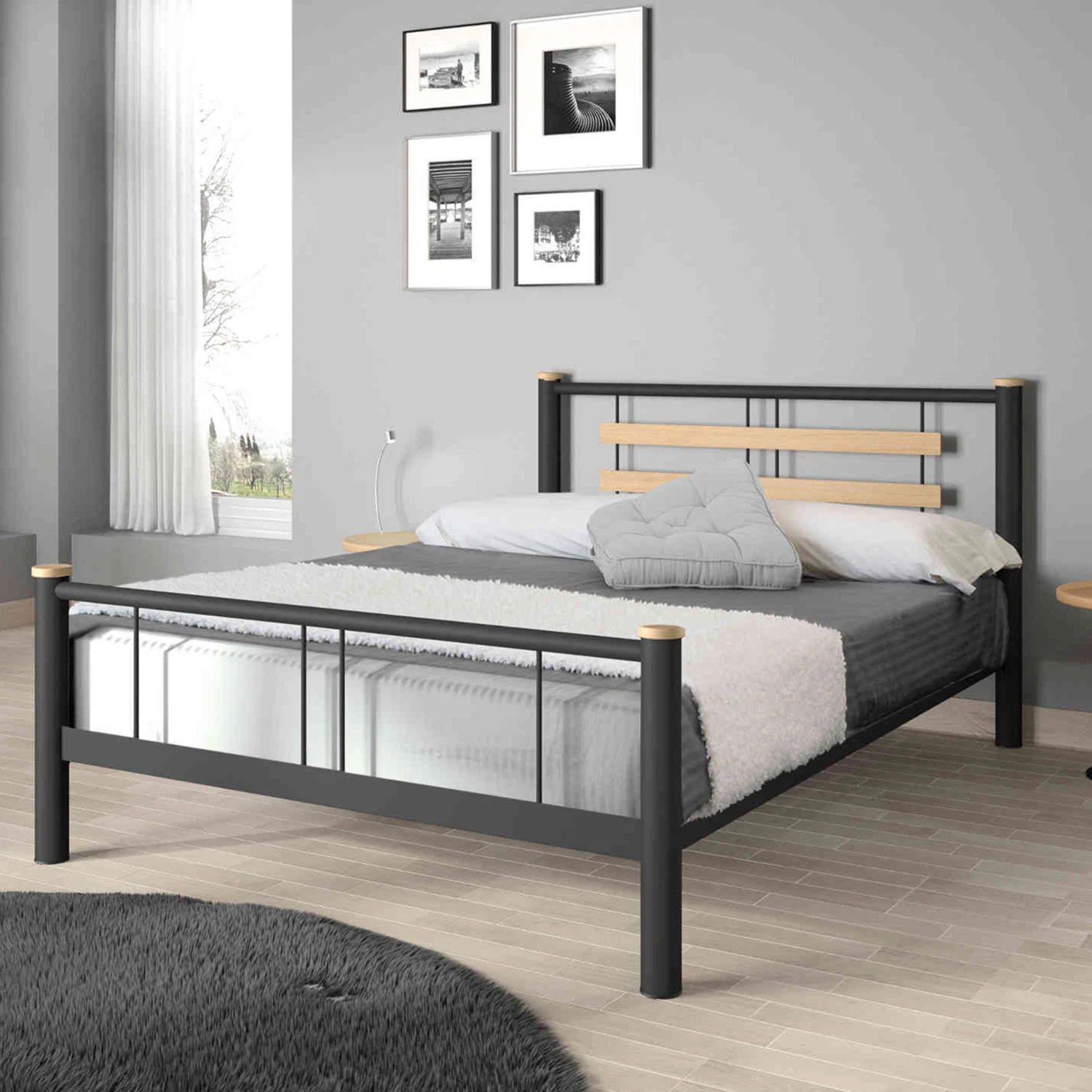 Lit en métal noir et chêne – LT4005