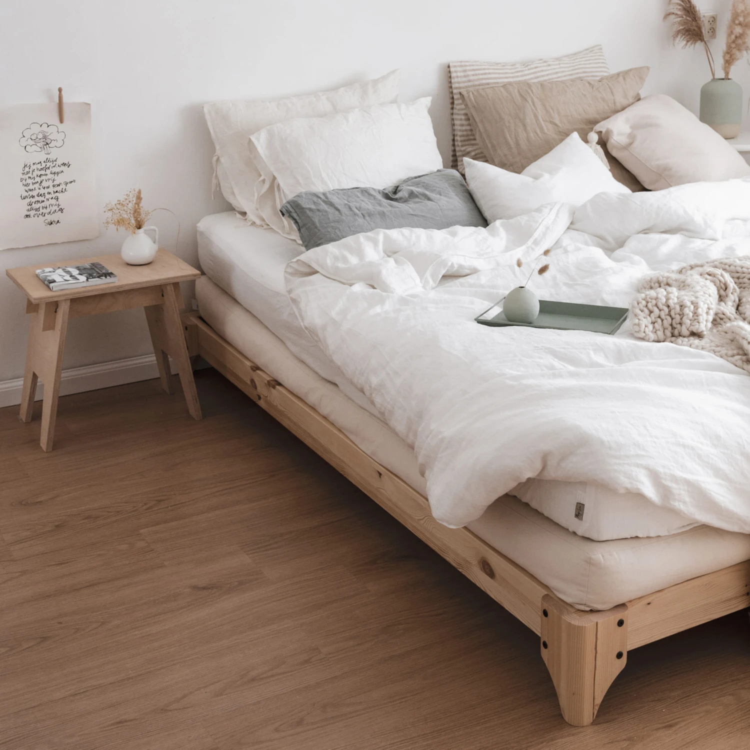 Ce lit style japonais est disponible en différentes dimensions : 140×200, 160×200 et 180×200.