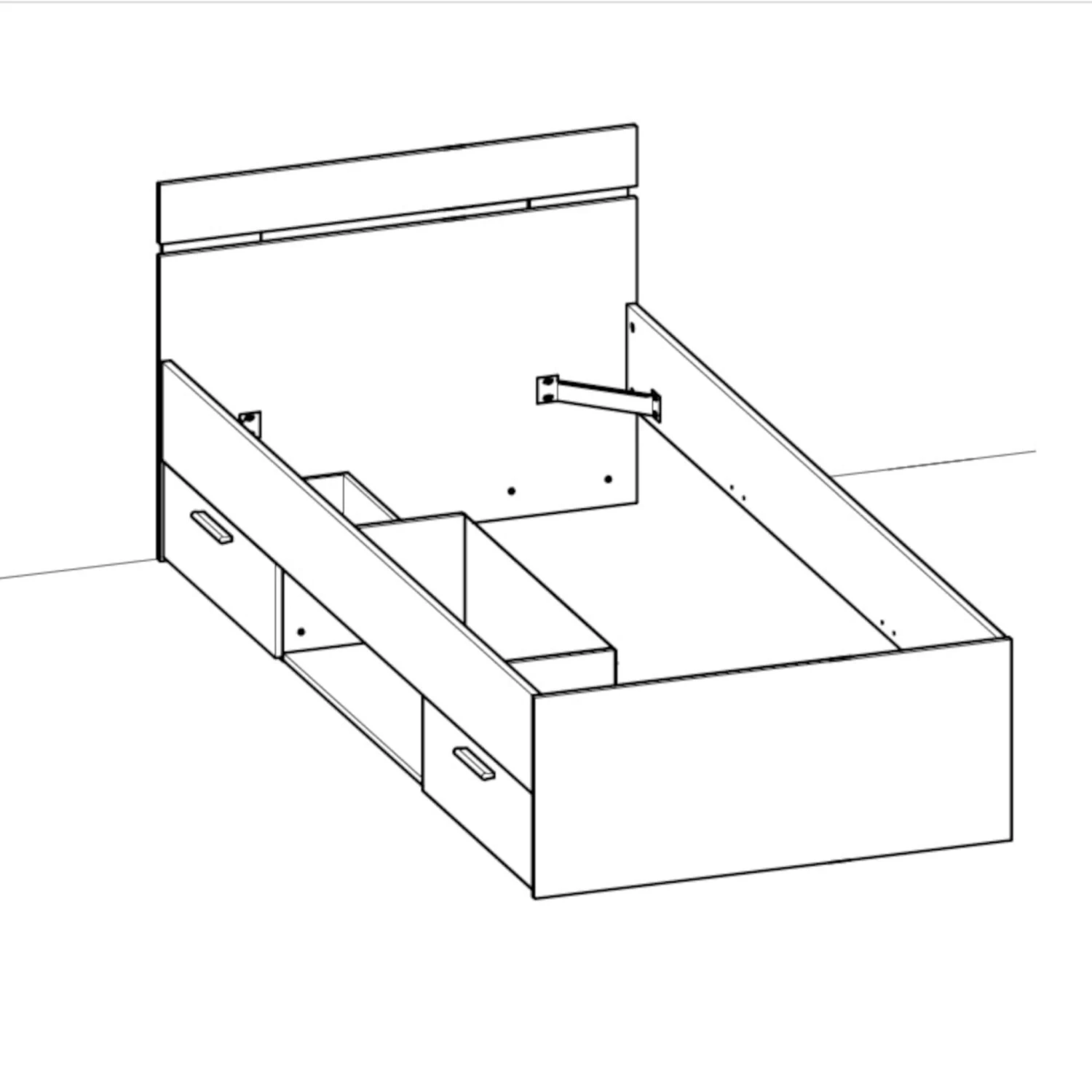 Dimensions complètes une fois installé du lit 90×200 : Longueur 204.3 cm, Largeur 94.5 cm, Hauteur 74.2 cm (tête de lit comprise). Poids du lit : 34.5 kg. Livré en kit à assembler avec notice de montage.