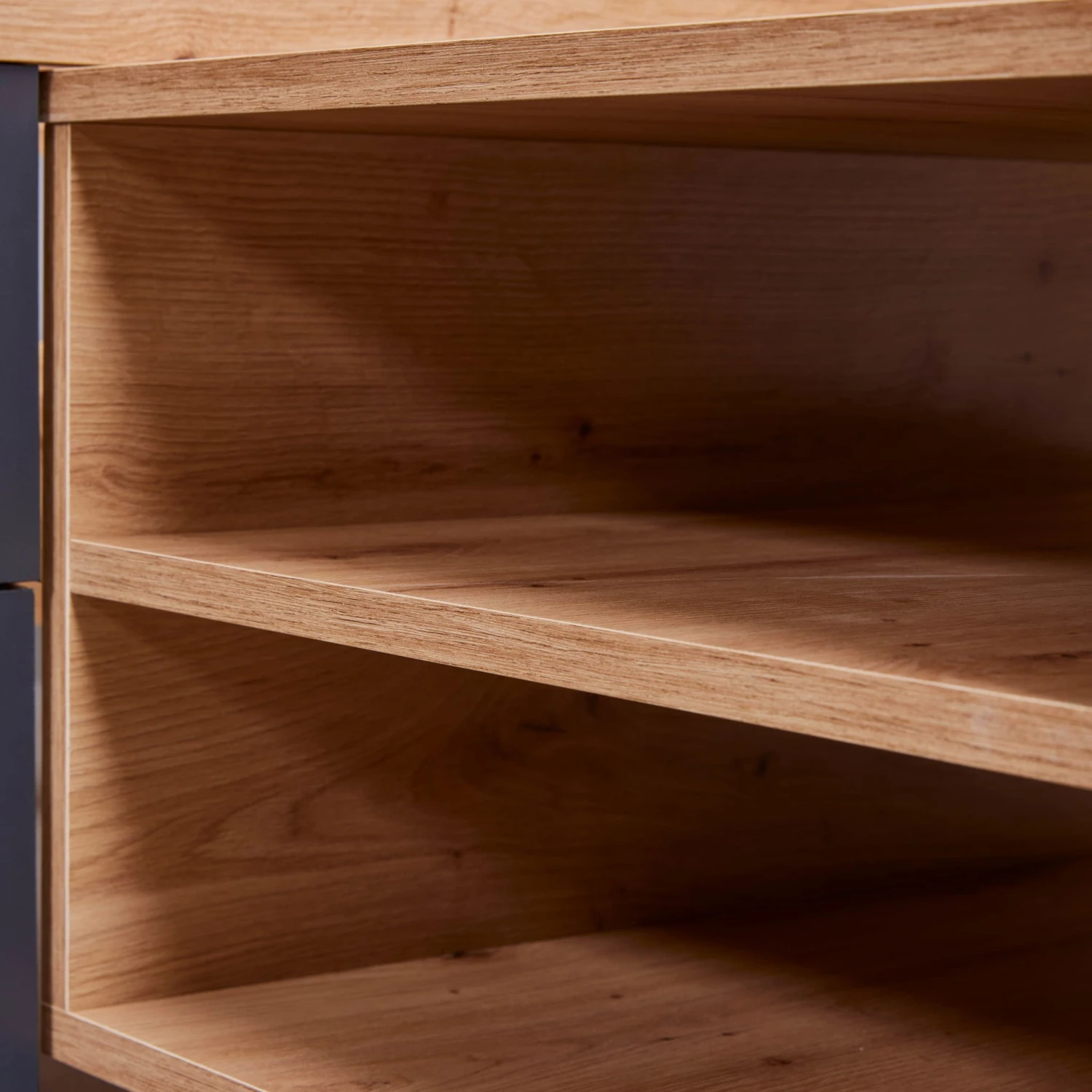 Ce lit multi-rangements en bois représente un réel atout pour optimiser votre chambre. Son coloris chêne et anthracite lui procure un style industriel, idéal pour s’intégrer dans une pièce tendance et moderne.
