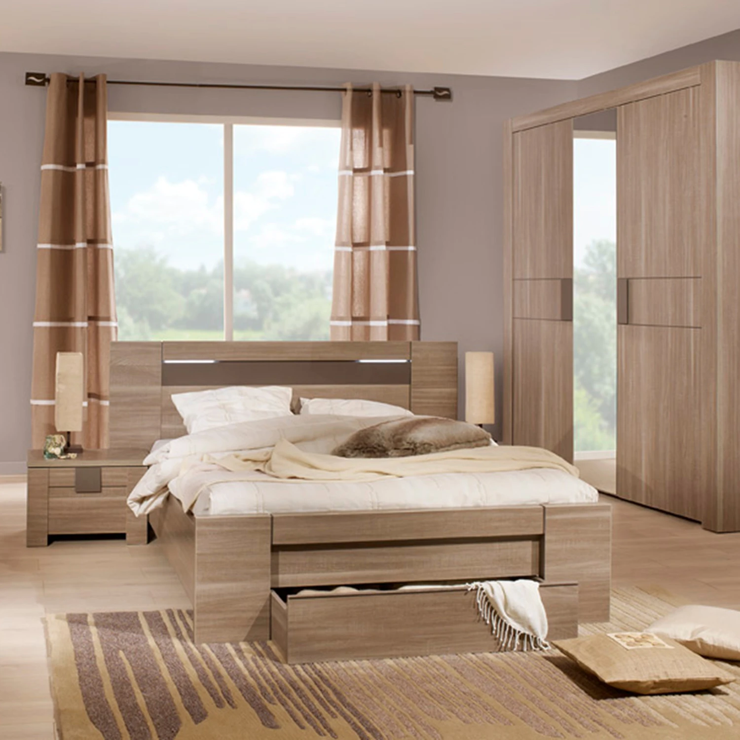 - Tête de lit incluse avec panneau mélaminé chocolat + leds