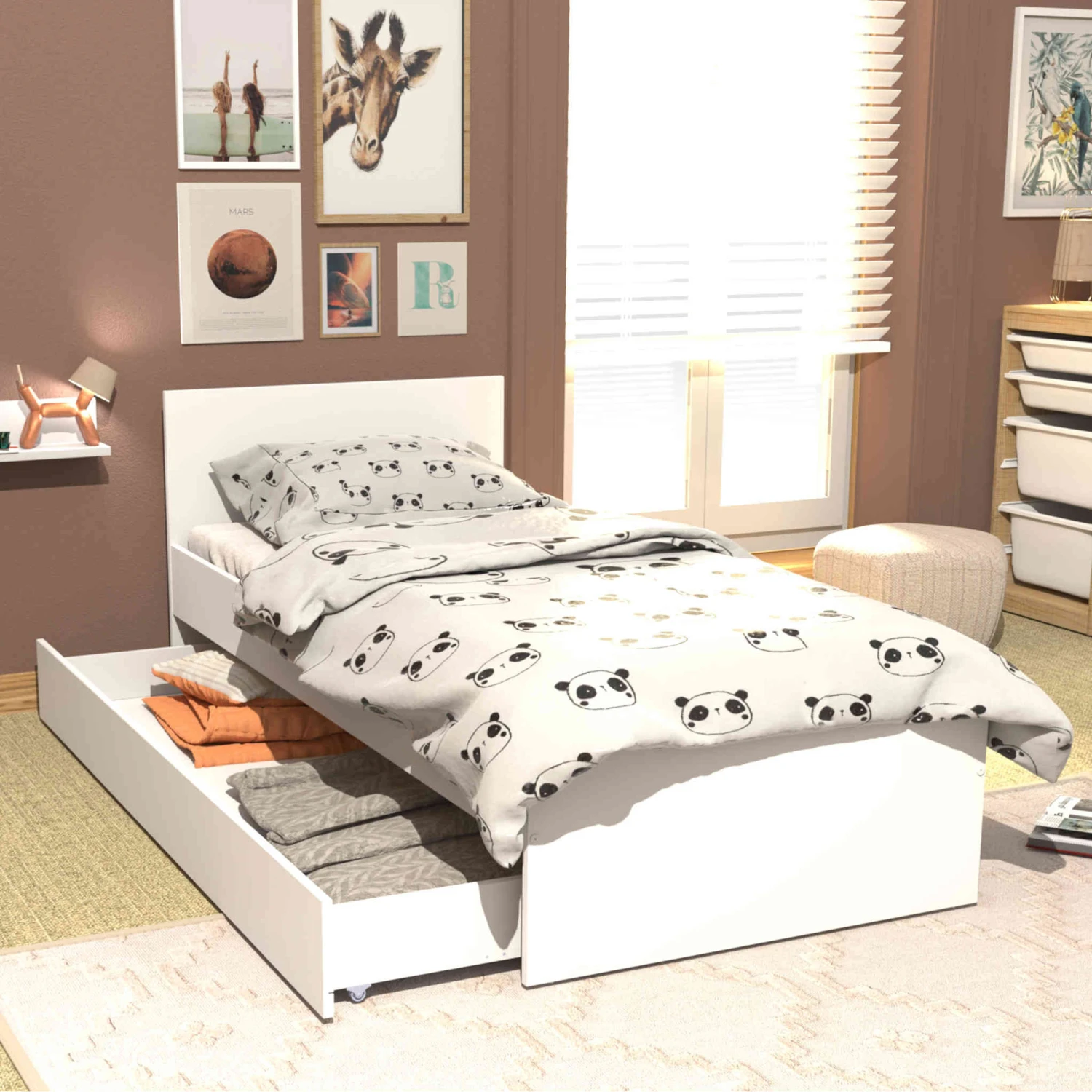 Lit tiroirs en bois blanc. Ce lit est un atout idéal pour sublimer