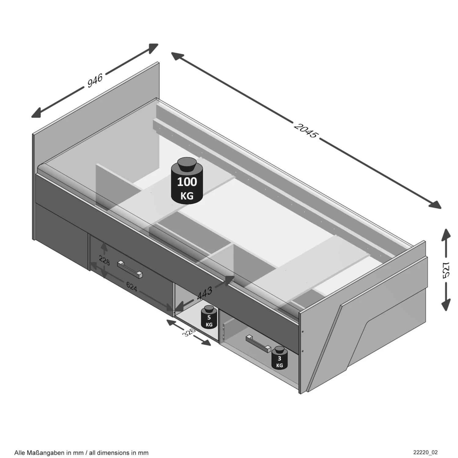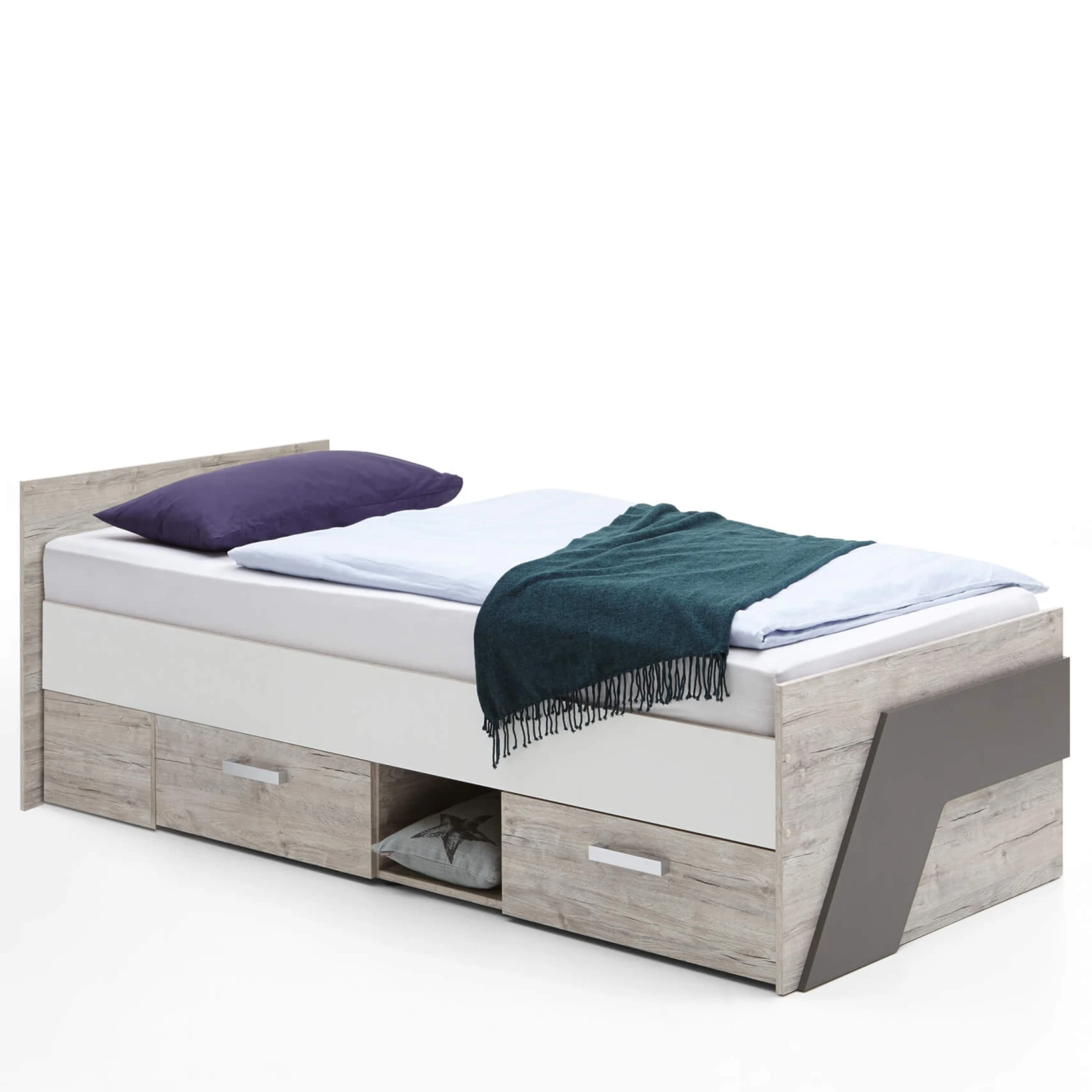 Lit tiroirs enfant 90×200 en bois imitation chêne sable –
