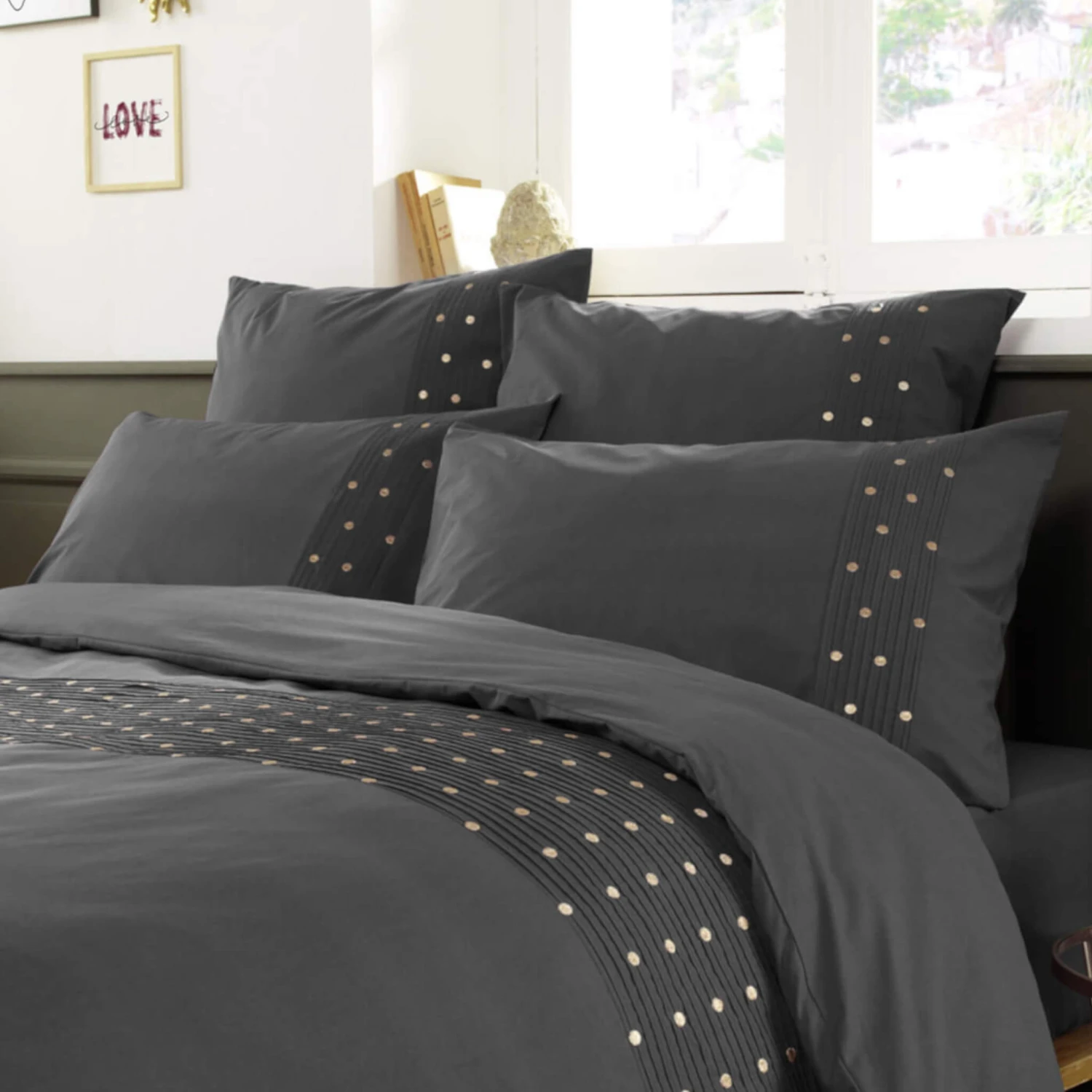 les pois dorés brodés, les taies
