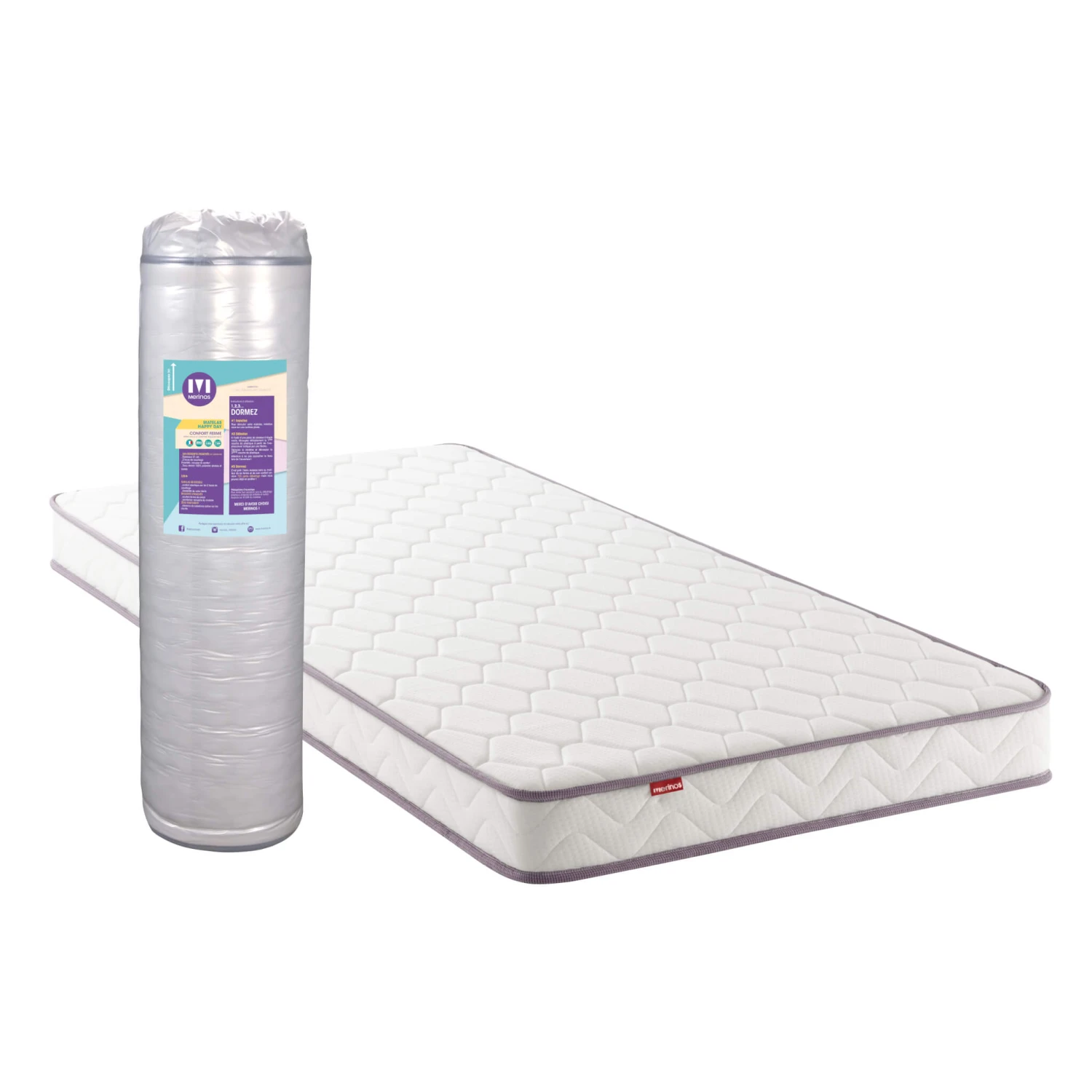 Afin de vous proposer des produits complètement adaptés à vos besoins, Merinos a développé un matelas alliant technologie et bien-être. D’une épaisseur totale de 21 centimètres, le matelas Happy Day vous procurera un accueil dynamique ainsi qu’un soutien ferme.