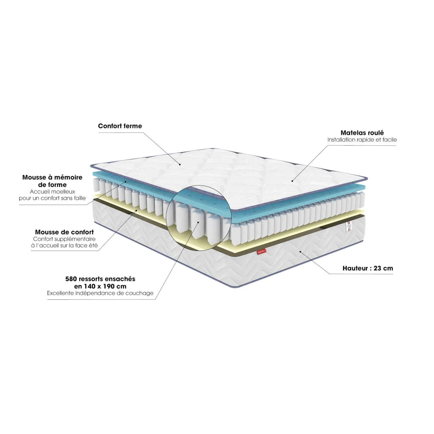 Ce matelas à ressorts ensachés (580 ressorts en 140×190) au