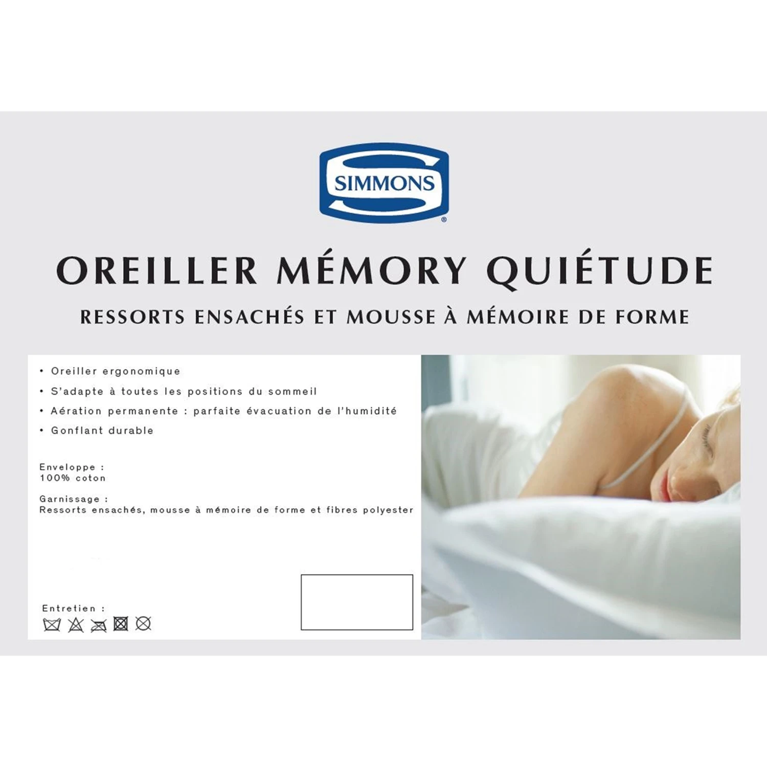 L’oreiller Memory Quiétude à ressorts ensachés Simmons est