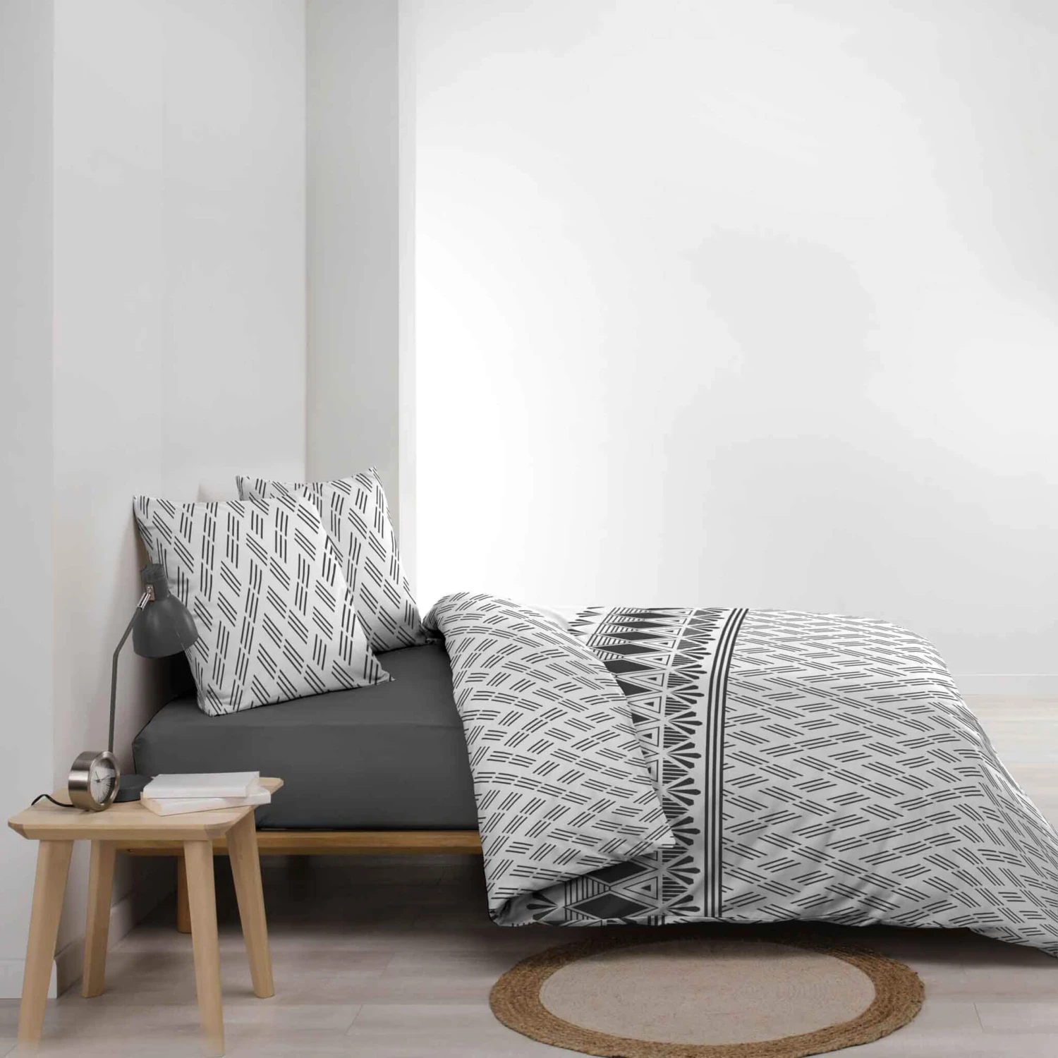 Découvrez la fabuleuse parure de lit Arcadia, de la marque Douceur D’intérieur. Grâce à son imprimé all-over géométrique sur fond blanc avec des nuances de gris tendance, cette parure deviendra l’élément central de votre décoration de chambre.