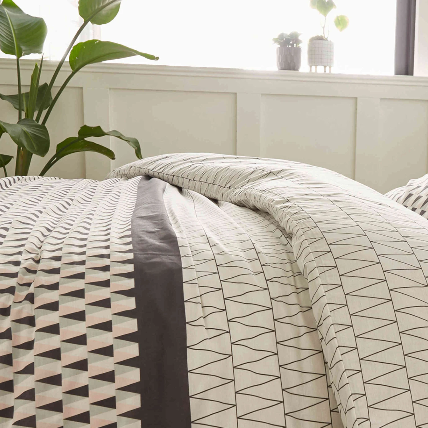 motifs géométriques, la parure de lit Basi crée une ambiance