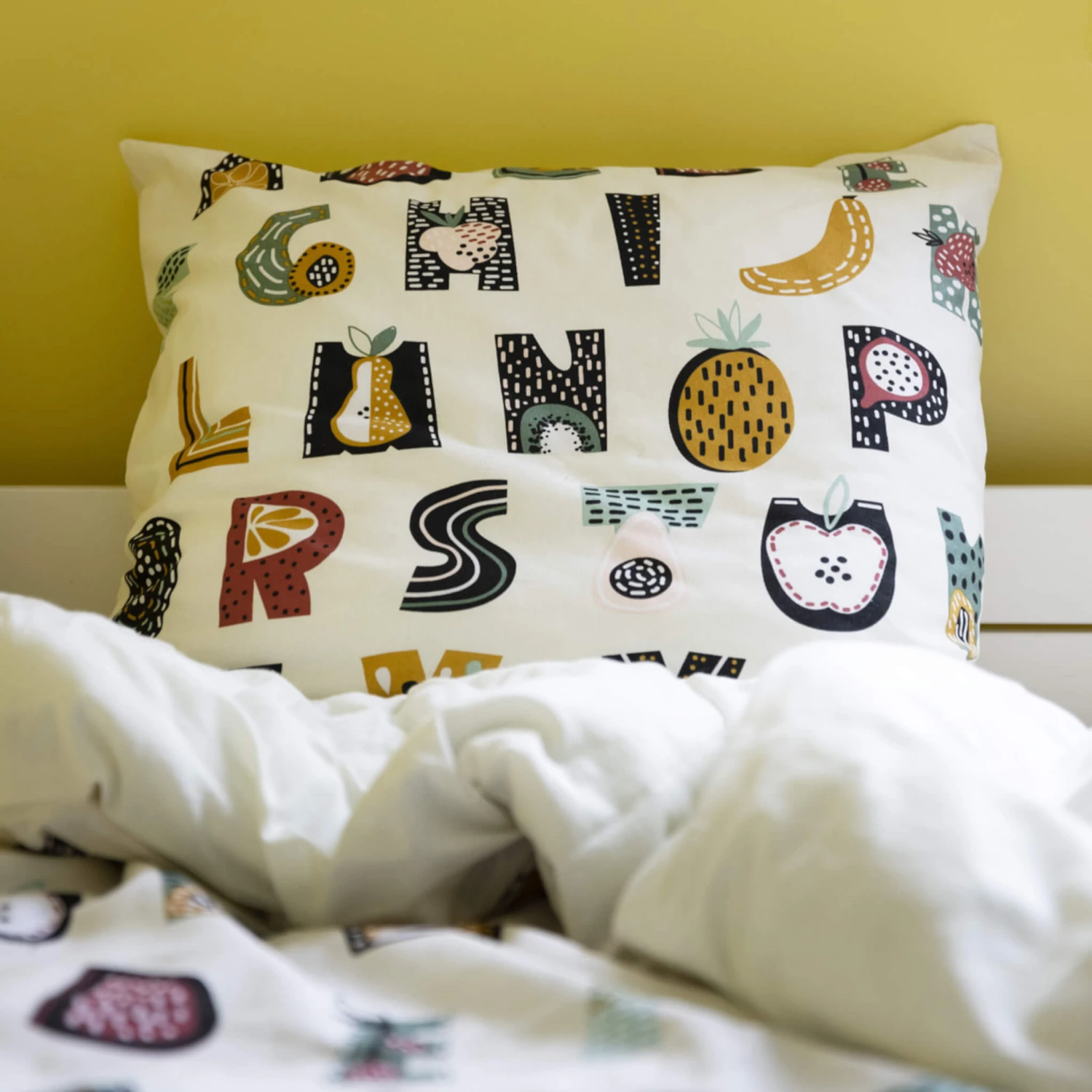 Découvrez la parure de lit enfant Farandole, de la marque Terre de Nuit. Voici l’accessoire de chambre parfait pour permettre à votre enfant d’apprendre l’alphabet de manière ludique. Sur un fond blanc, vous retrouverez l’ensemble des lettres de l’alphabet sous forme de fruits amusants. Une multitude de couleurs rend cette parure unique et vivante. En outre, la parure de lit enfant Farandole s’adaptera à tous les styles de chambres d’enfants, colorés ou non.