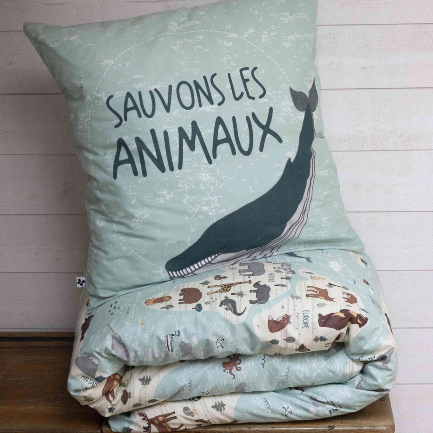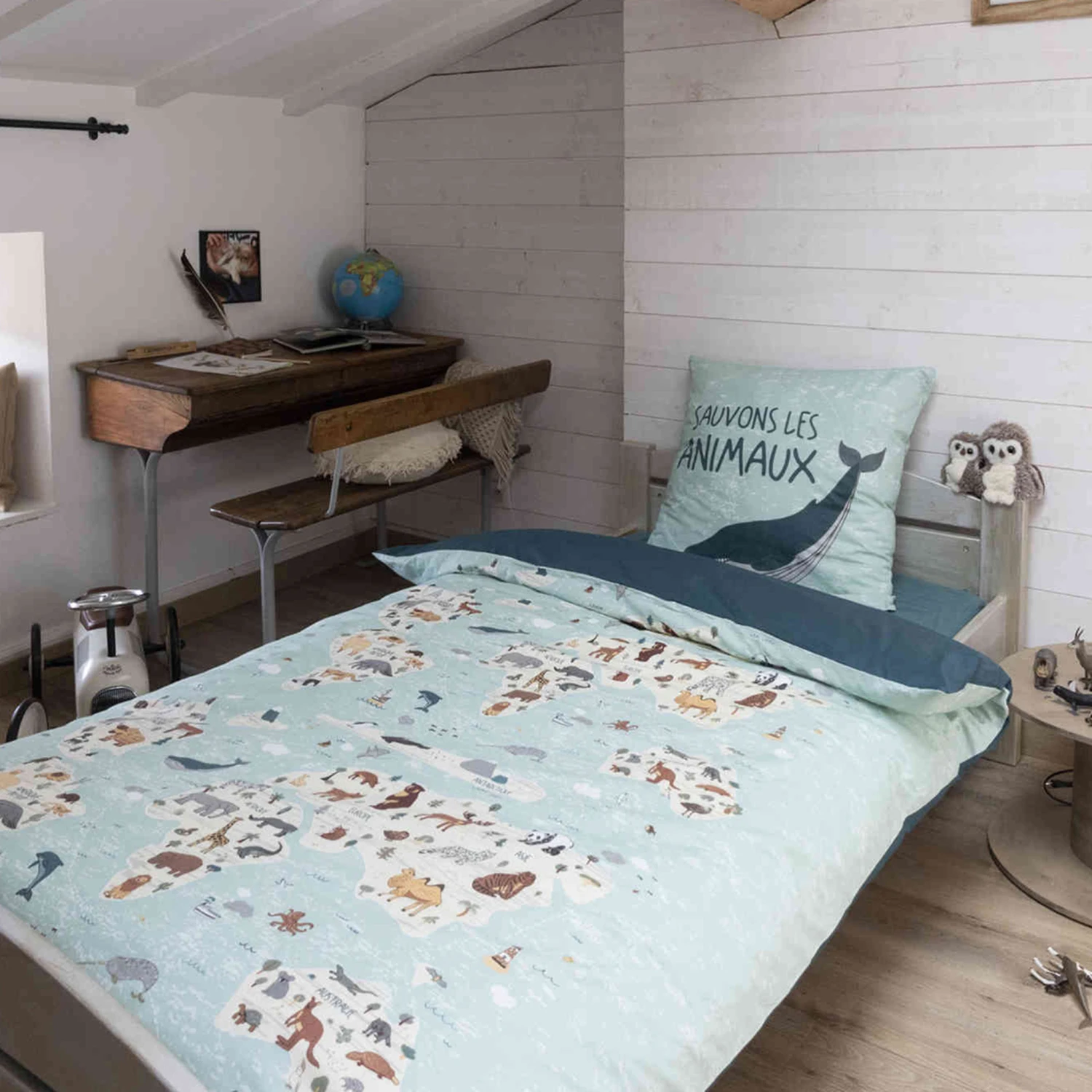 sur l’autre face. Cette parure de lit enfant mixe à la