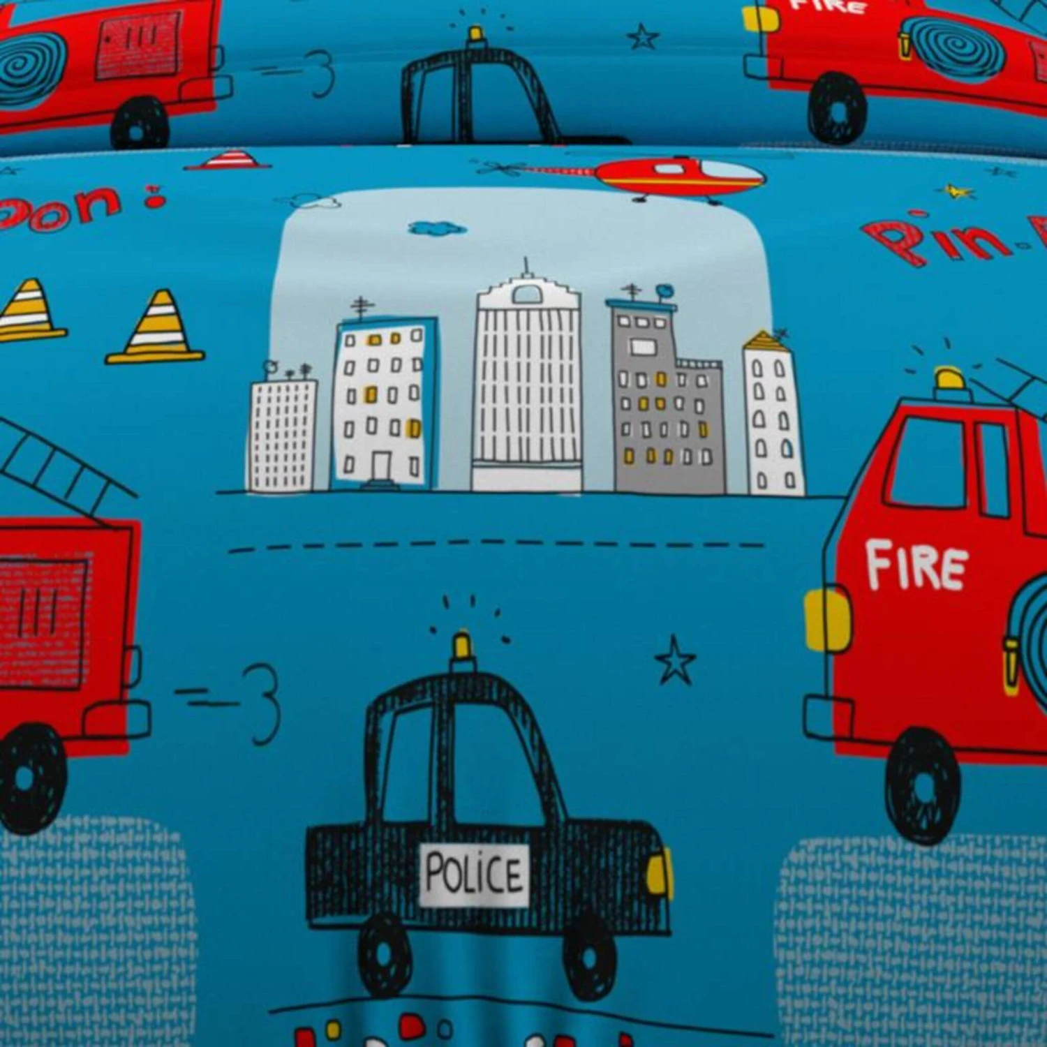 Parure de lit enfant Pompiers bleu – Soleil d’Ocre