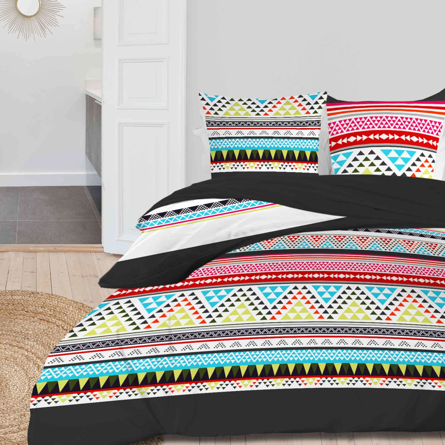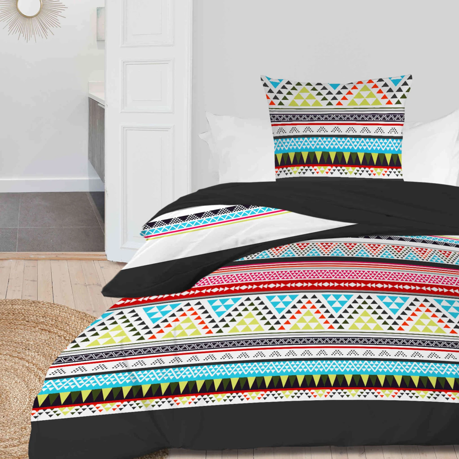 oreillers. Grâce à son motif géométrique et ses couleurs,