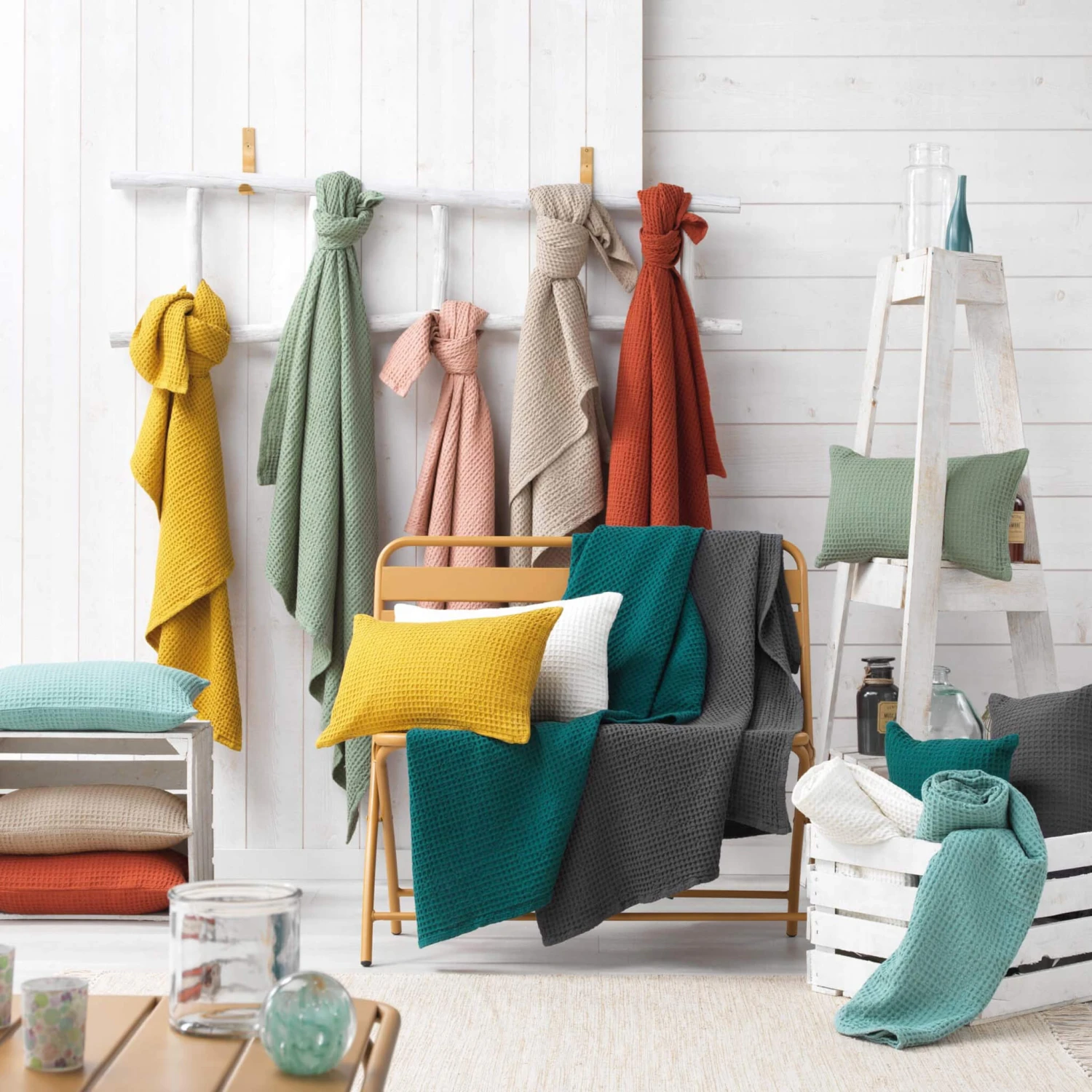 Plaid gaufrette en coton uni 125×150 cm. Ce plaid est l’atout idéal pour vous apporter