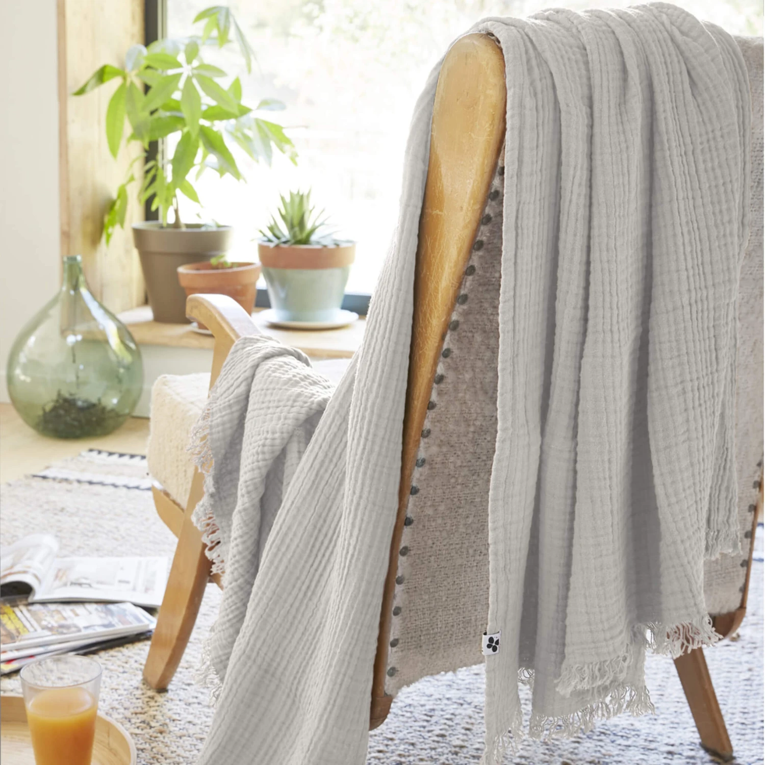 gaze de coton, ce plaid vous procure un toucher doux et