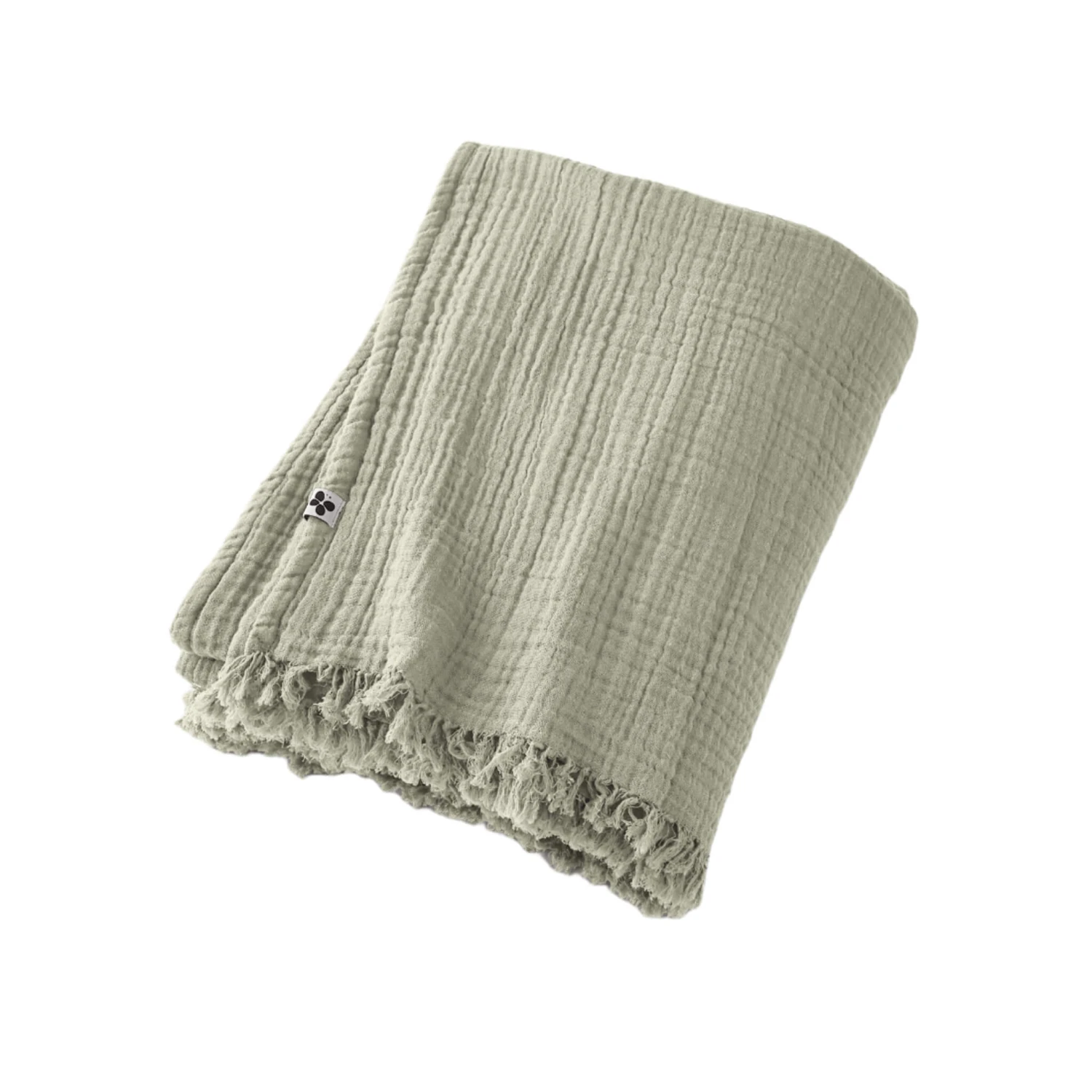 Plaid gaze de coton à franges vert