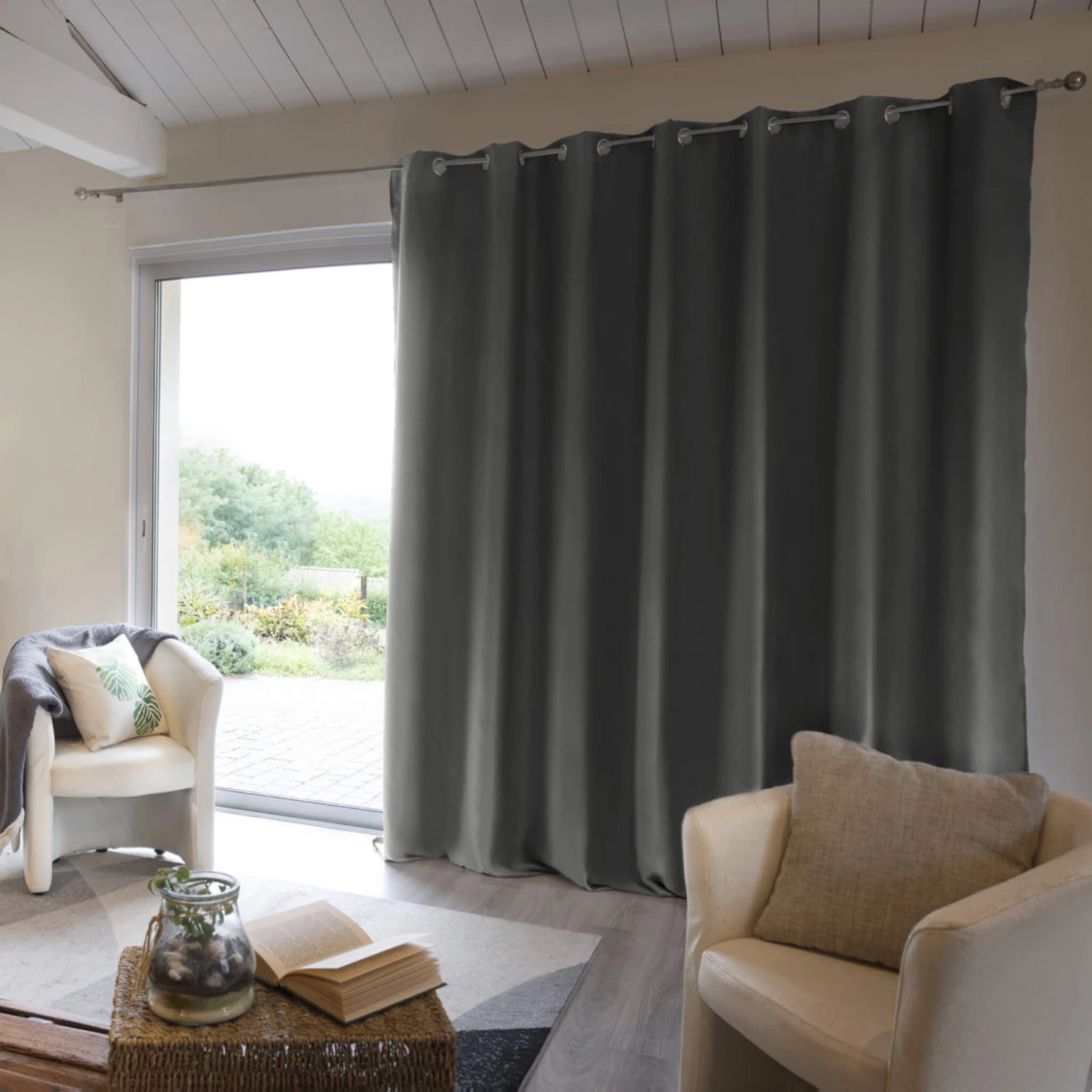 Rideau occultant thermique à œillets 280×260 cm.