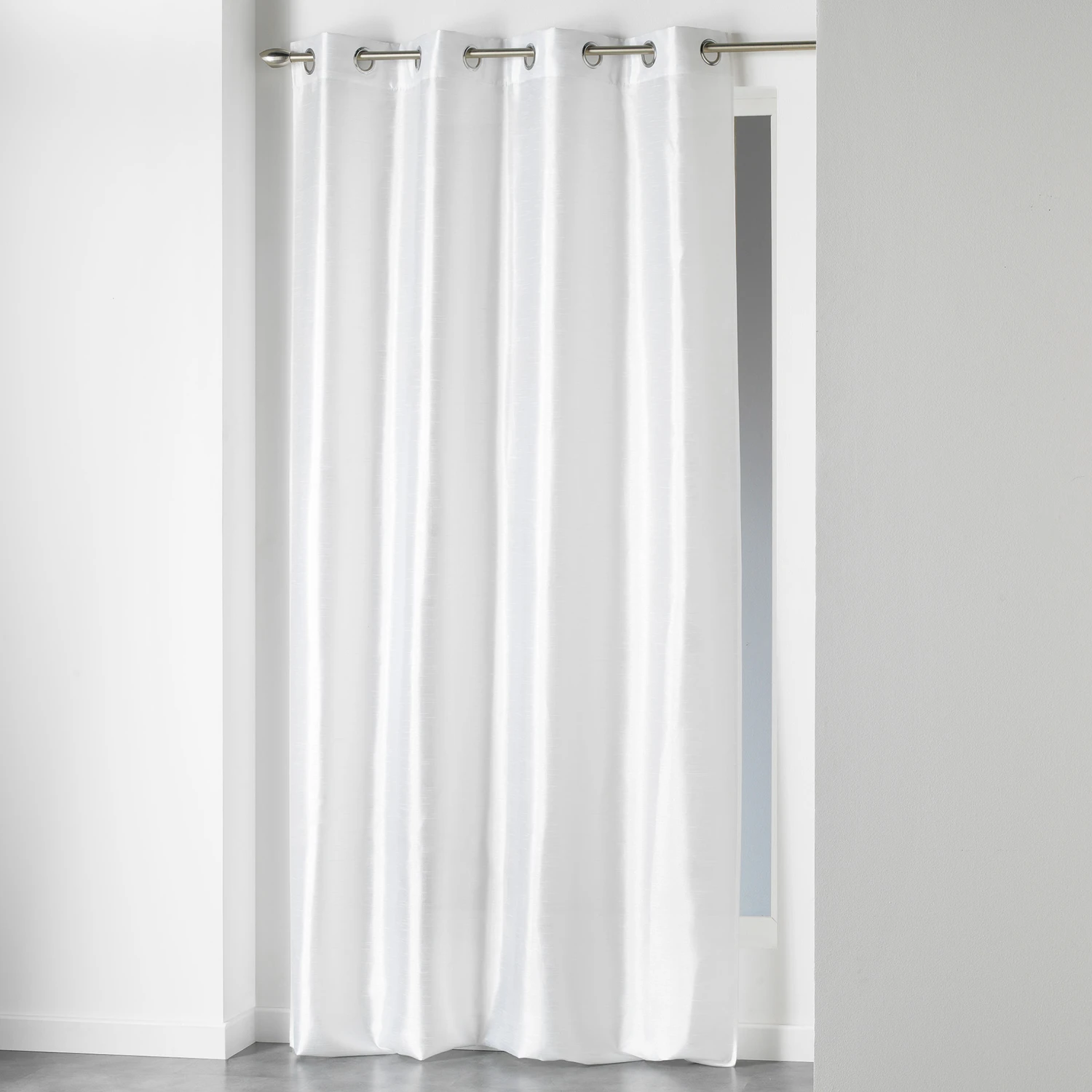 Rideau shantung shana uni de coloris blanc et de taille 140×240 cm. Il est 100% polyester et possède des oeillets ronds couleur argent s’intégrant facilement à votre tringle à rideau. Le shantung se caractérise par sa texture douce, brillante et soyeuse. Il apportera une touche de déco supplémentaire à votre chambre.