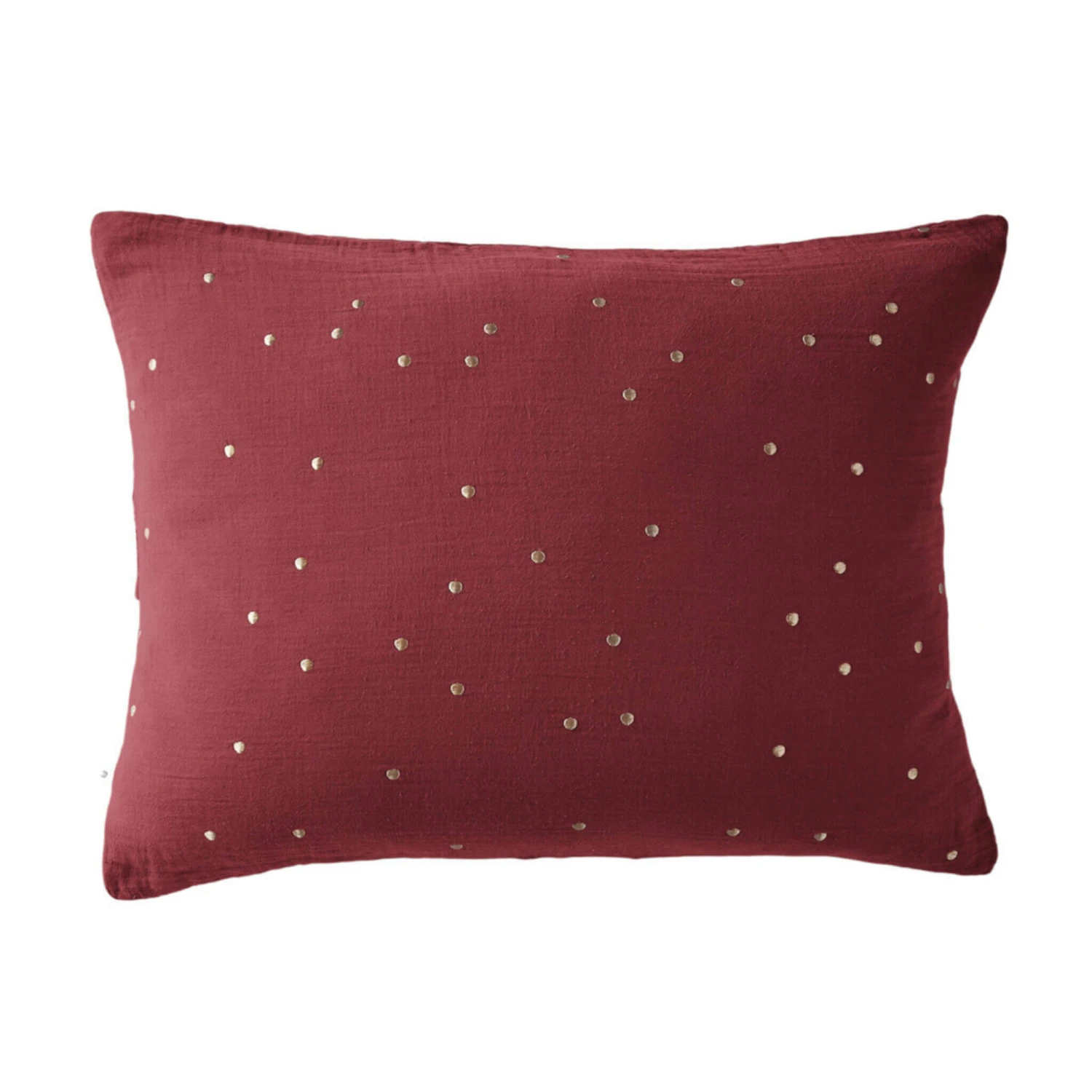 Taie d’oreiller à pois brodés double gaze de coton bordeaux