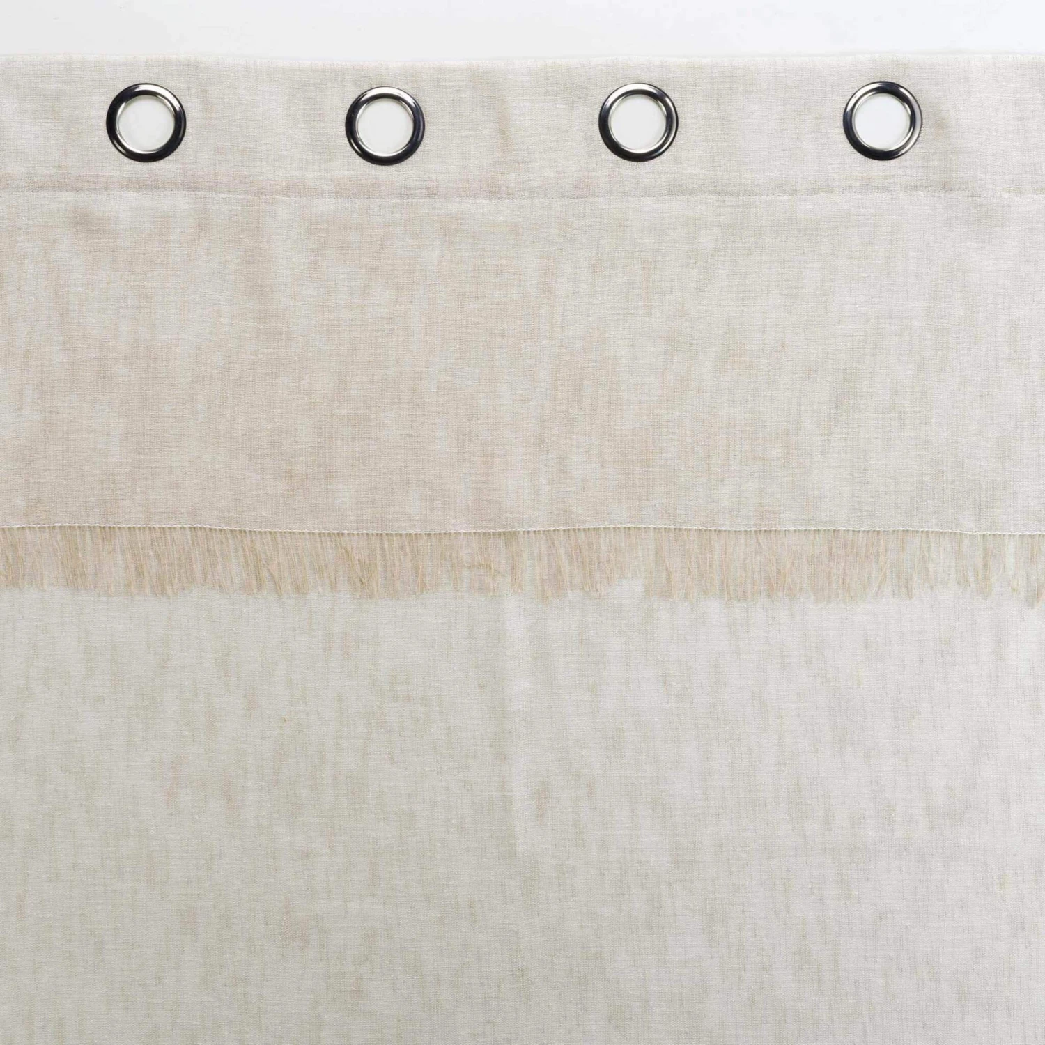 Concernant son design, vous retrouverez une surface unie de couleur lin avec une finition à oeillets métalliques de diamètre 4 cm (à l’intérieur) et 6 cm (à l’extérieur), ce qui facilitera l’installation sur votre tringle.